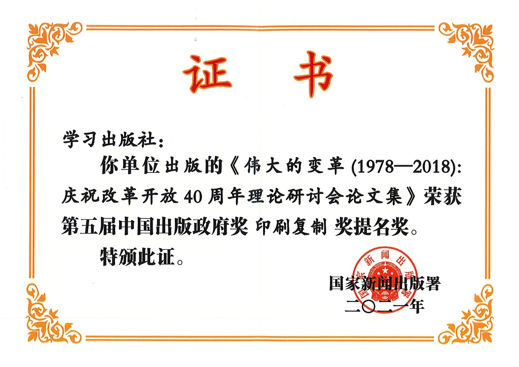 第五届中国出版政府奖印刷复制奖提名奖