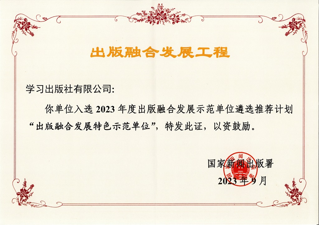 我社入选2023年度出版融合发展示范单位遴选推荐计划“出版融合发展特色示范单位”